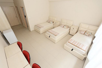• Yine oda büyüklüğüne göre 2-4 kişi kapasitelidir ve oda içinde çalışma masası, buzdolabı gibi temel eşyalar bulunur.
